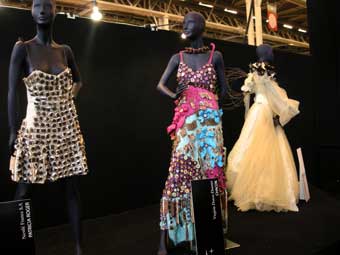 ドレスの上に色・形が様々なチョコレートでのデコレーション。