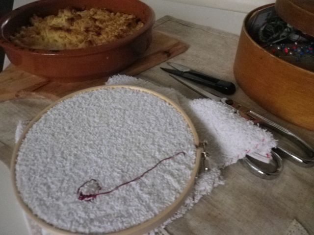 そしてお菓子を焼いてる合間に布巾がボロボロになってきたから、新しい布巾を作 る。